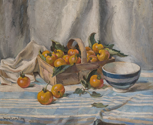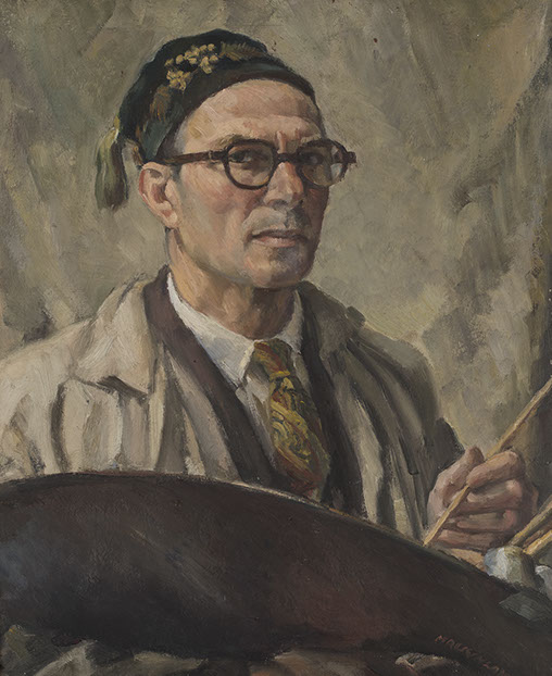 Despite losing his first five years in England to the war, Mackinlay intended to establish a reputation in Britain as a serious painter. During the 1920s, he met with mixed success. His contributions to the prestigious London Group and the New English Art Club were short-lived. He gained more attention in exhibitions devoted to Australian artists in London, which gave him both the confidence and the contacts to make inroads at the Royal Academy. His most ambitious pictures were admired there, entirely in tune with the emerging trend which re-evaluated traditional skills of drawing and composition as a vital reflection of the experience of modern life, and not its enemy. Around 1928, he settled in Bushey, just north of London. Taking a step back from the often antagonistic cross-currents of contemporary art in the capital, he joined a flourishing colony of artists with a strong faith in the value of traditional methods. The full range of Mackinlay’s work in oils, from his figure compositions to landscapes, portraits and still-life, is on view in Section I, Paintings.