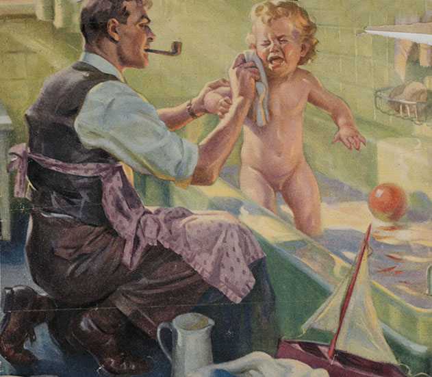 (Miguel’s grandson Michael Wood protests while his father, Ken Wood bathes him)
