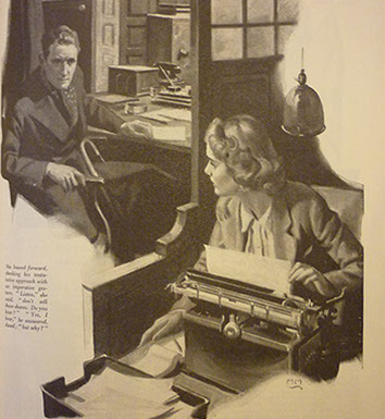 “She leaned forward checking his tentative approach with an imperative gesture.” in A Shy Man’s courtship in Good Housekeeping, Jan. 1939, p. 21 Original signed MM