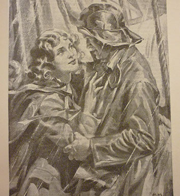 “He leaped down, ran to her, and grabbed her. Get below! he shouted angrily, and forced her along the deck towards the hatch” in Frisco Clipper by F. Britten Austin in The Strand, Jul. 1934, p. 97