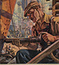 "The Riveter – specially painted for John Bull by M. Mackinlay – is a skilled man; a craftsman round whom a controversy rages” cutting held by Bushey Museum
